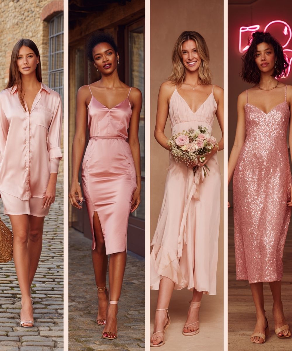Les accessoires sont la clé pour parfaire votre tenue en robe rose. Une pochette ou un sac à main de couleur neutre (écru, beige, blanc) ou métallisé (or ou argent) s’harmonisera facilement avec votre robe. Côté bijoux, l’or rose ou l’or jaune mettent en valeur les tons roses avec raffinement. Des perles ou des pierres claires (quartz rose, cristal) renforcent la douceur de l’ensemble. Enfin, une ceinture fine peut structurer la silhouette d’une robe fluide. Une étole ou une veste blanche apportera une touche chic lors des soirées plus fraîches.
